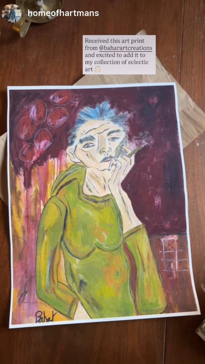 Each order goes directly to supporting Bahar’s work and the time it takes to create it.