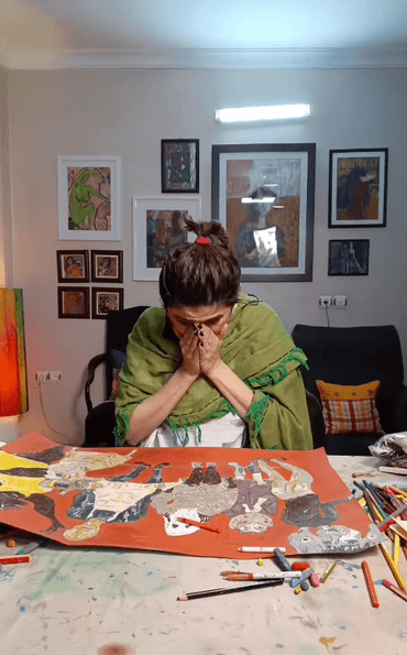 Bahar is a self-taught expressionist artist and she has been painting for over 10 years now. She loves experimenting with things like face makeup, nail polish, acrylics, and markers, and every piece she makes carries a story that invites people to feel and connect.