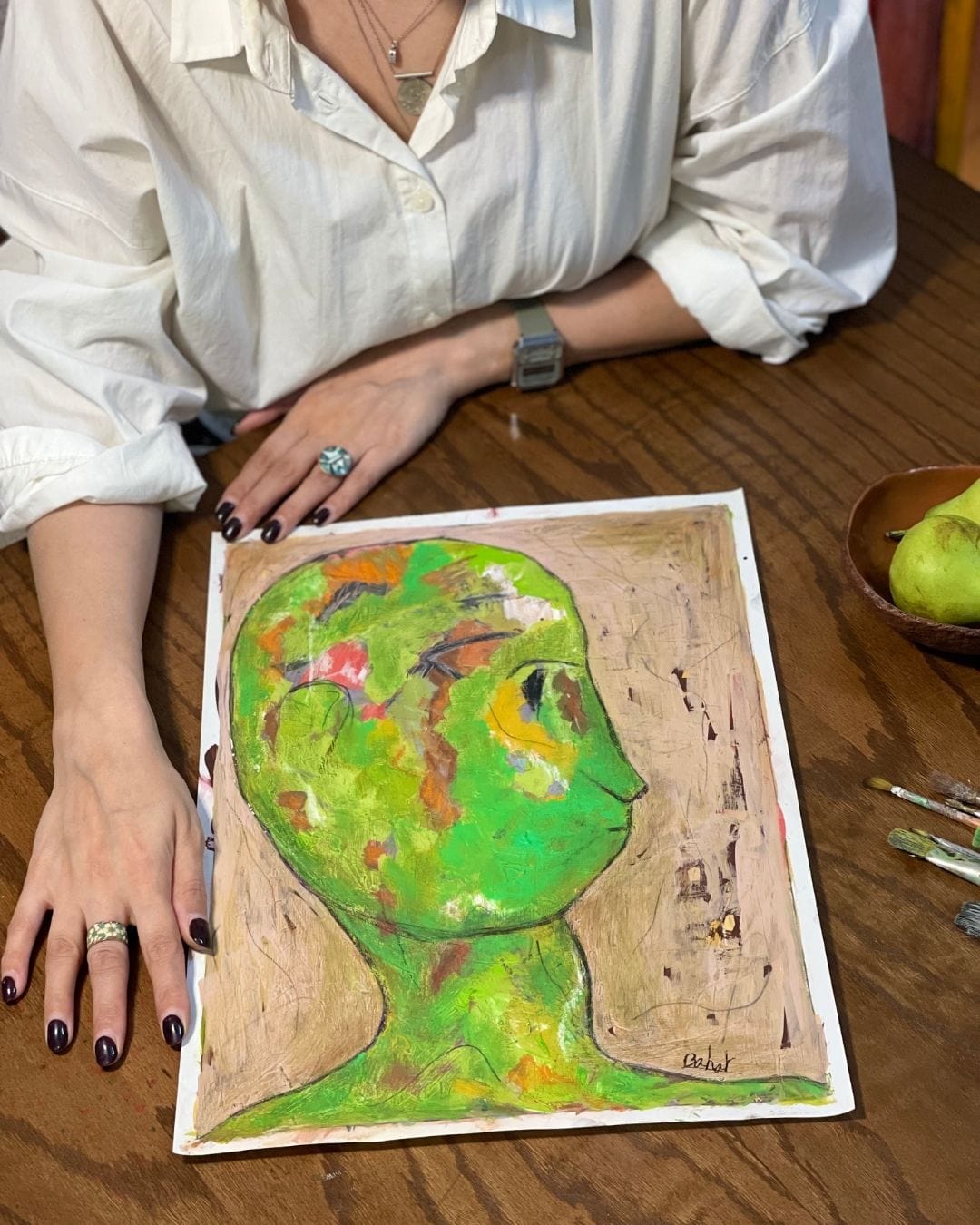 Bahar Haghverdi is a self-taught Iranian artist, born in 1986. She works with expressionism and surrealism, and builds her compositions with dense layers of color, texture, and everyday symbols she picks up from the world around her. Her art is raw, personal, and meant to feel alive. Bahar draws inspiration from artists like Edvard Munch and Egon Schiele, whose emotional depth and bold figures echo through her work.