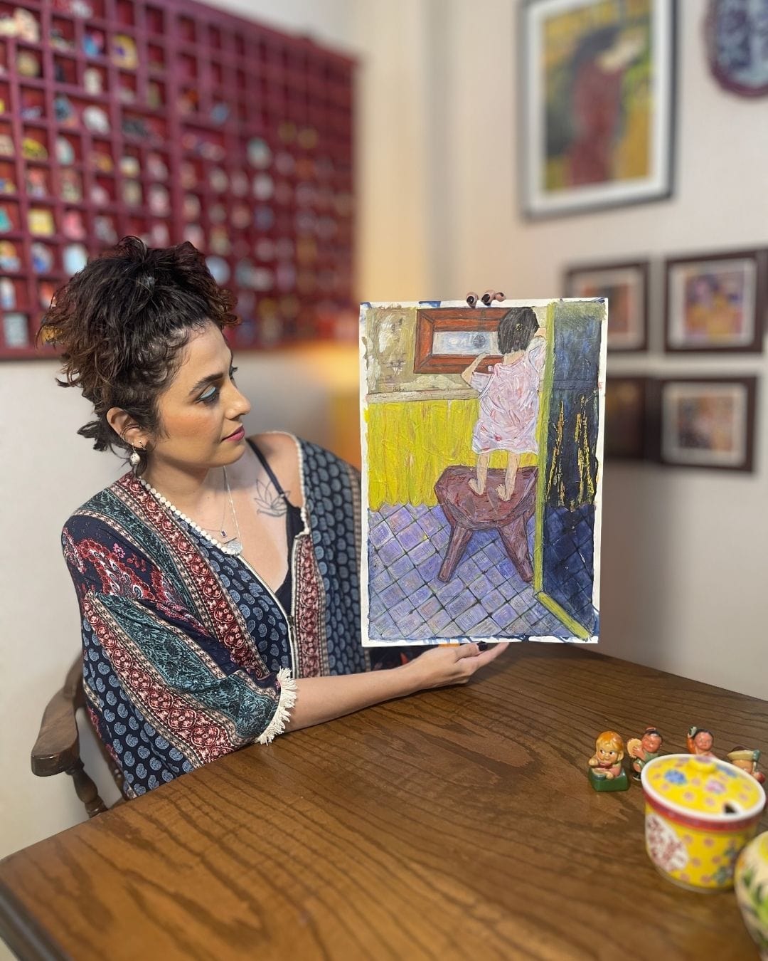 Bahar Haghverdi is a self-taught Iranian artist, born in 1986. She works with expressionism and surrealism, and builds her compositions with dense layers of color, texture, and everyday symbols she picks up from the world around her. Her art is raw, personal, and meant to feel alive. Bahar draws inspiration from artists like Edvard Munch and Egon Schiele, whose emotional depth and bold figures echo through her work.