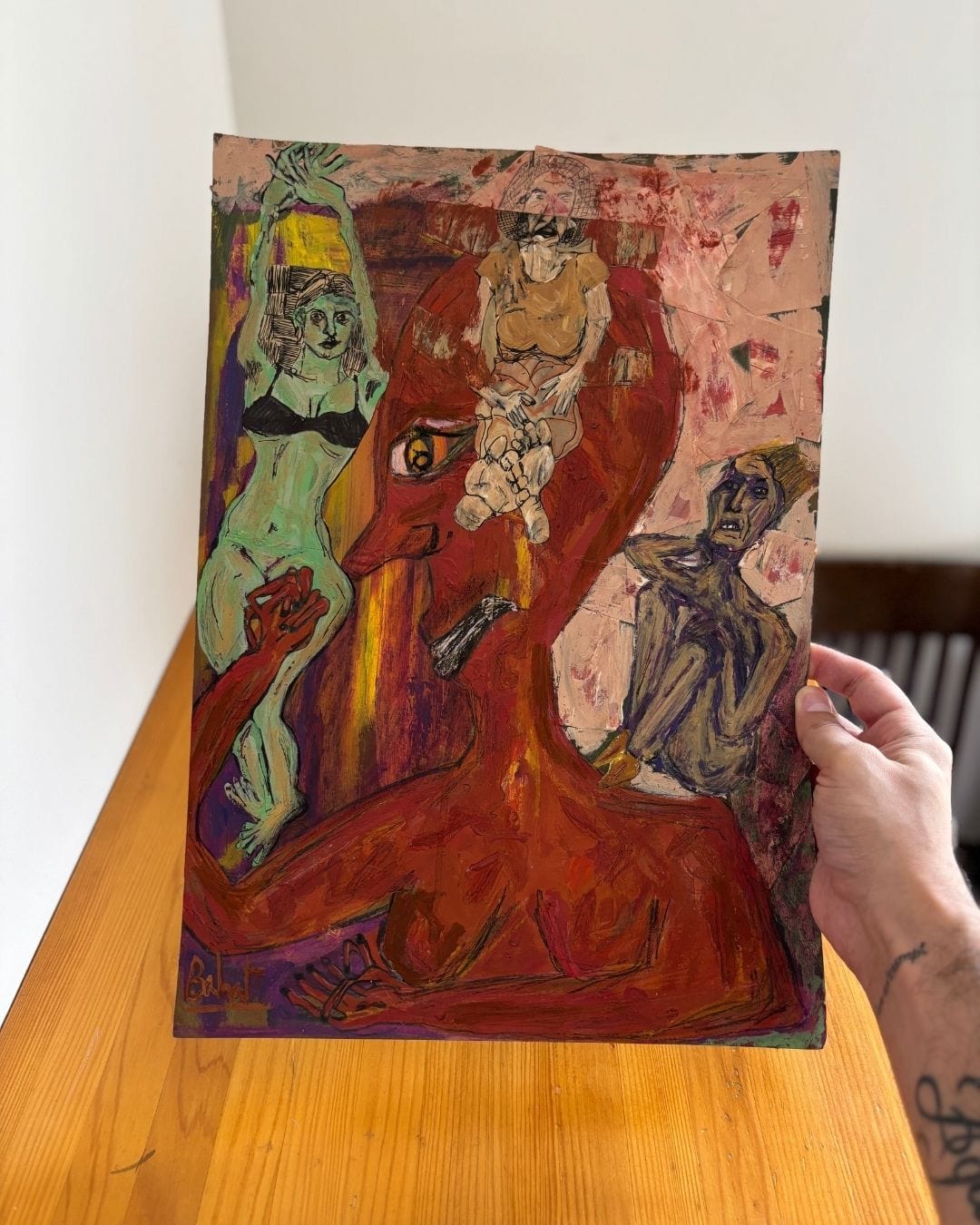 Bahar Haghverdi is a self-taught Iranian artist, born in 1986. She works with expressionism and surrealism, and builds her compositions with dense layers of color, texture, and everyday symbols she picks up from the world around her. Her art is raw, personal, and meant to feel alive. Bahar draws inspiration from artists like Edvard Munch and Egon Schiele, whose emotional depth and bold figures echo through her work.