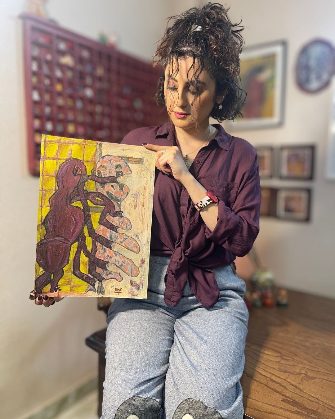 Bahar Haghverdi is a self-taught Iranian artist, born in 1986. She works with expressionism and surrealism, and builds her compositions with dense layers of color, texture, and everyday symbols she picks up from the world around her. Her art is raw, personal, and meant to feel alive. Bahar draws inspiration from artists like Edvard Munch and Egon Schiele, whose emotional depth and bold figures echo through her work.